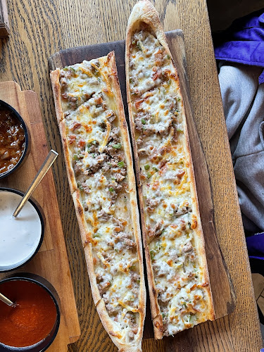 Ik heb daar onlangs gegeten en, oh man, de keuze is overweldigend! Van vlees tot vegetarisch, ze hebben het allemaal. De chef is echt een meester in zijn vak. Berichten van andere gasten weerspiegelden het: “Heerlijk, super smakelijk!” En ik kan het niet eens ontkennen. De pide was vochtig, goed gevuld, en de smaken waren gewoonweg fantastisch. Maar ik moet zeggen, de prijzen kunnen wat aan de hoge kant zijn voor wat je krijgt. Vond het een beetje jammer, maar dat neemt niet weg dat de kwaliteit er echt is.